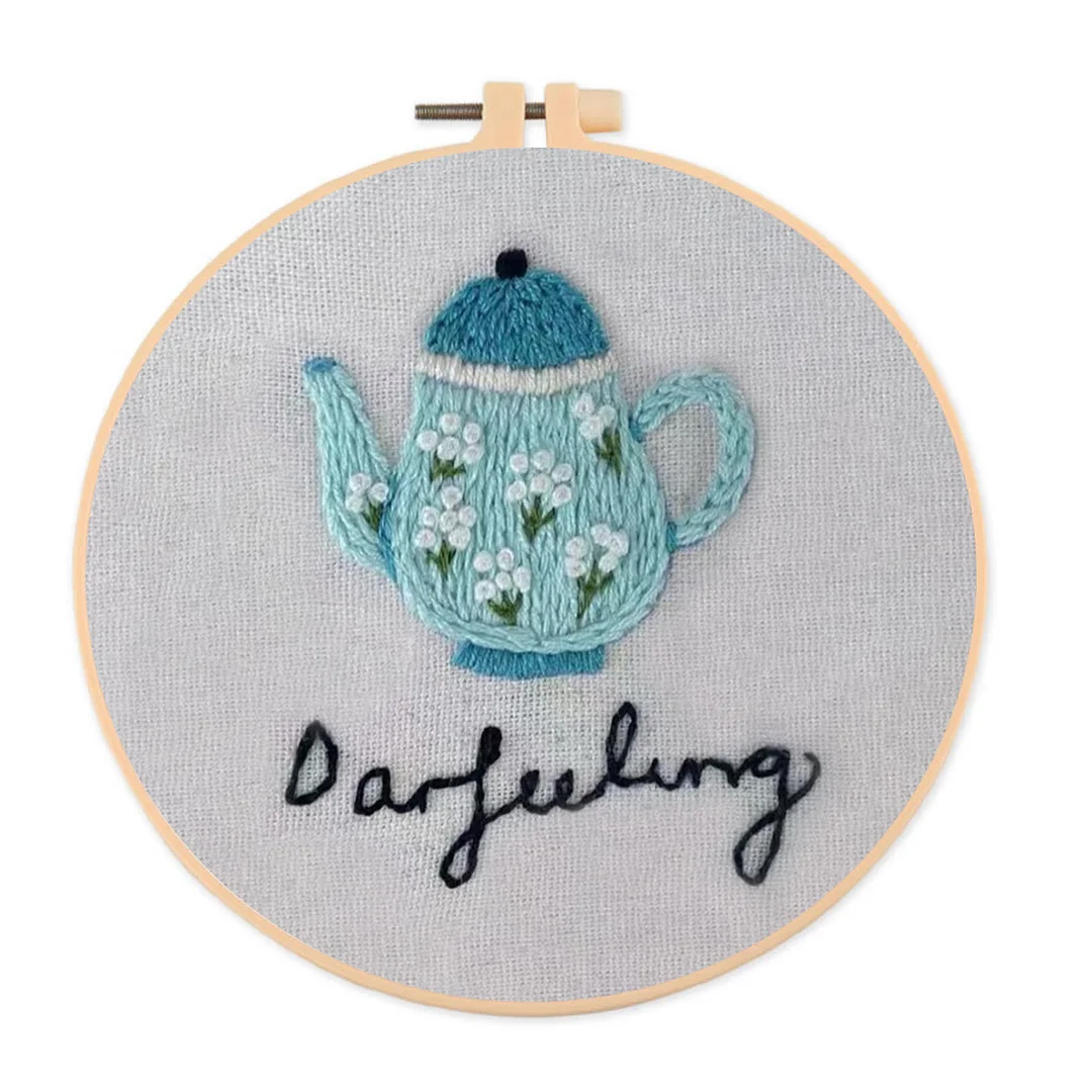 Embroidery Kit- Darjeeling Tea | Cozy Crafts Easy Embroidery Kit For Beginners