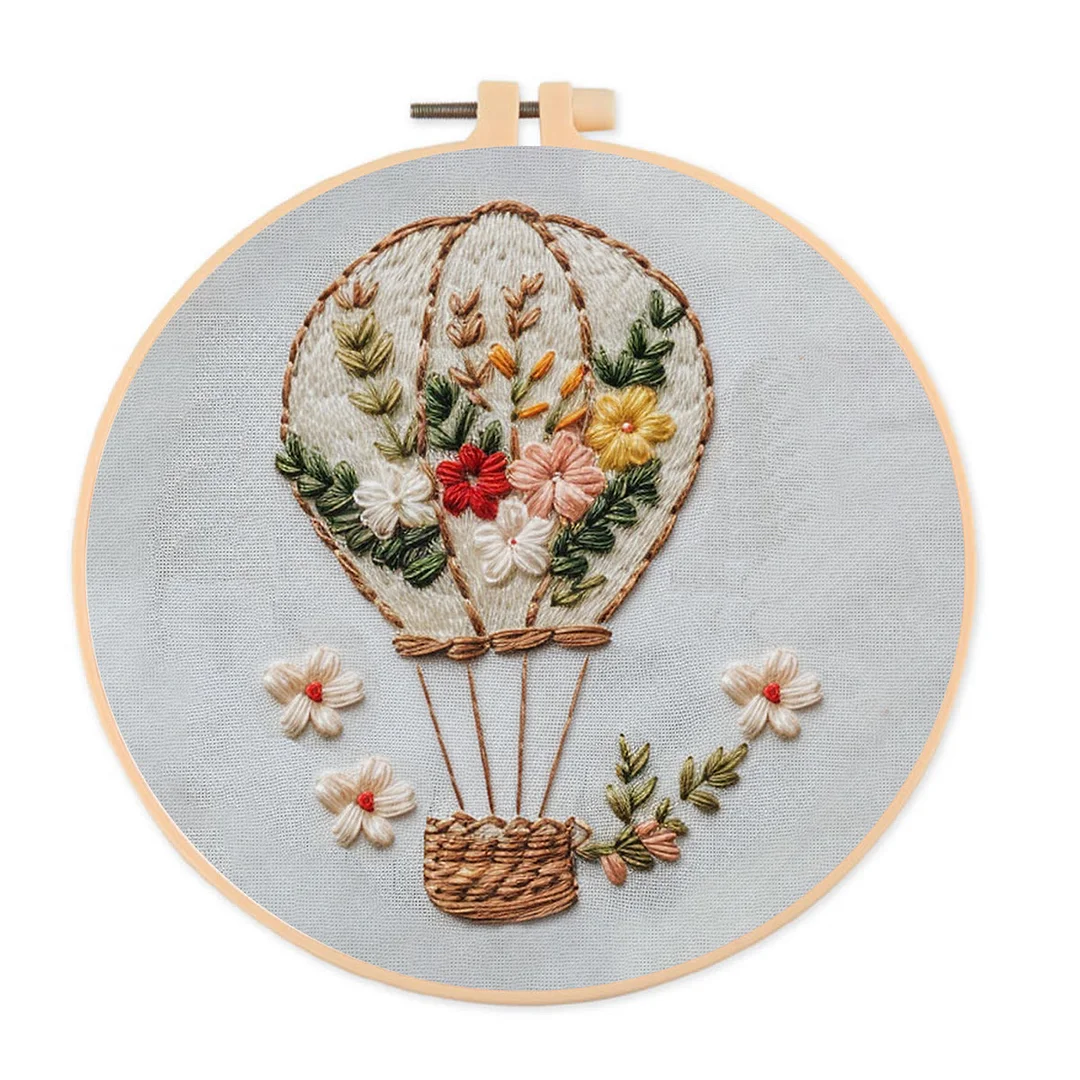 Embroidery Kit-Floral Hot Air Balloon Easy Embroidery Kit For Beginners | Autumn Crafts