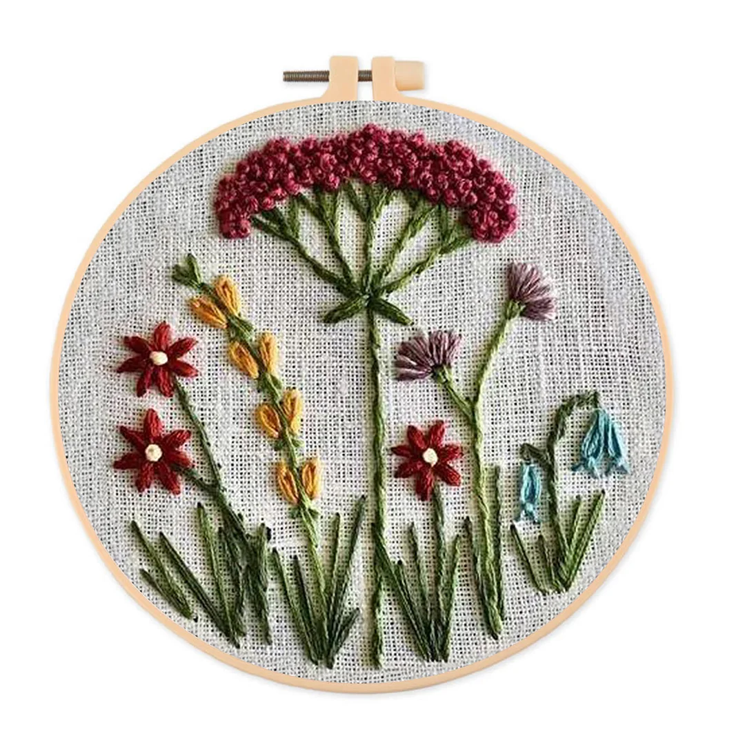 Embroidery Kit- Red Floral Pattern | Embroidery Kit For Beginner,Modern Embroidery,Cross Stitch