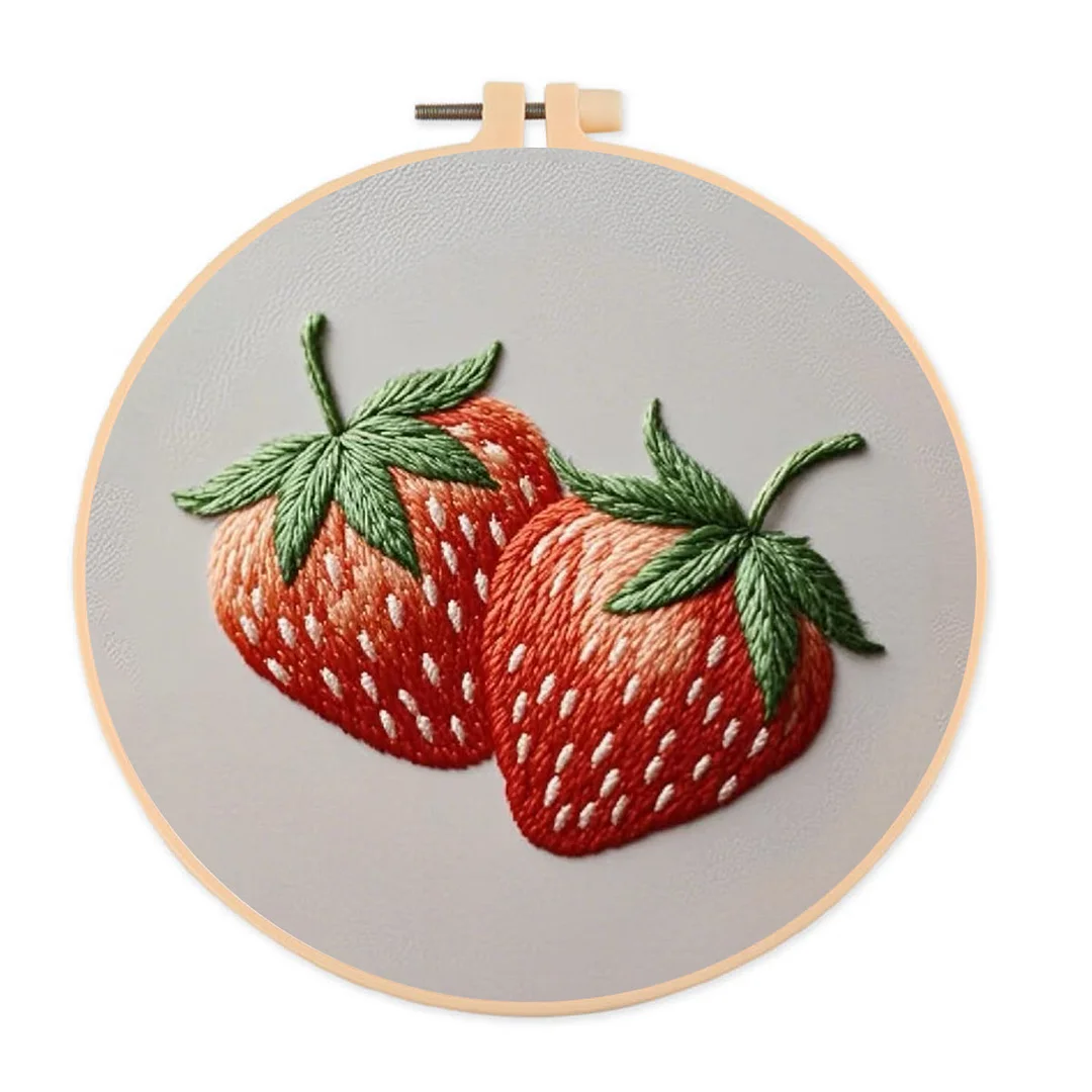 Embroidery Kit- Two Big Strawberries | For Beginners DIY Craft Kits