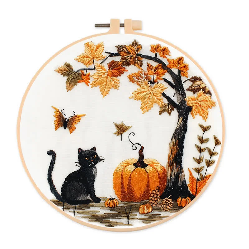 Sushamore Embroidery Kit - Black Cat Halloween Trick or Treat